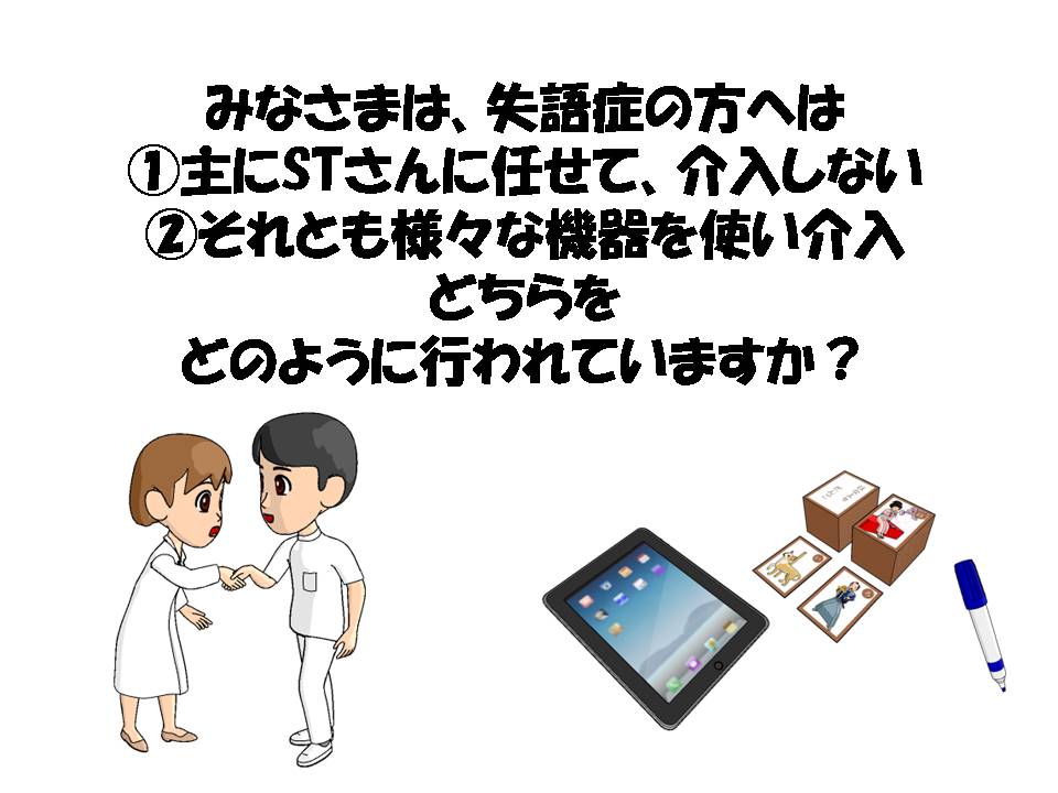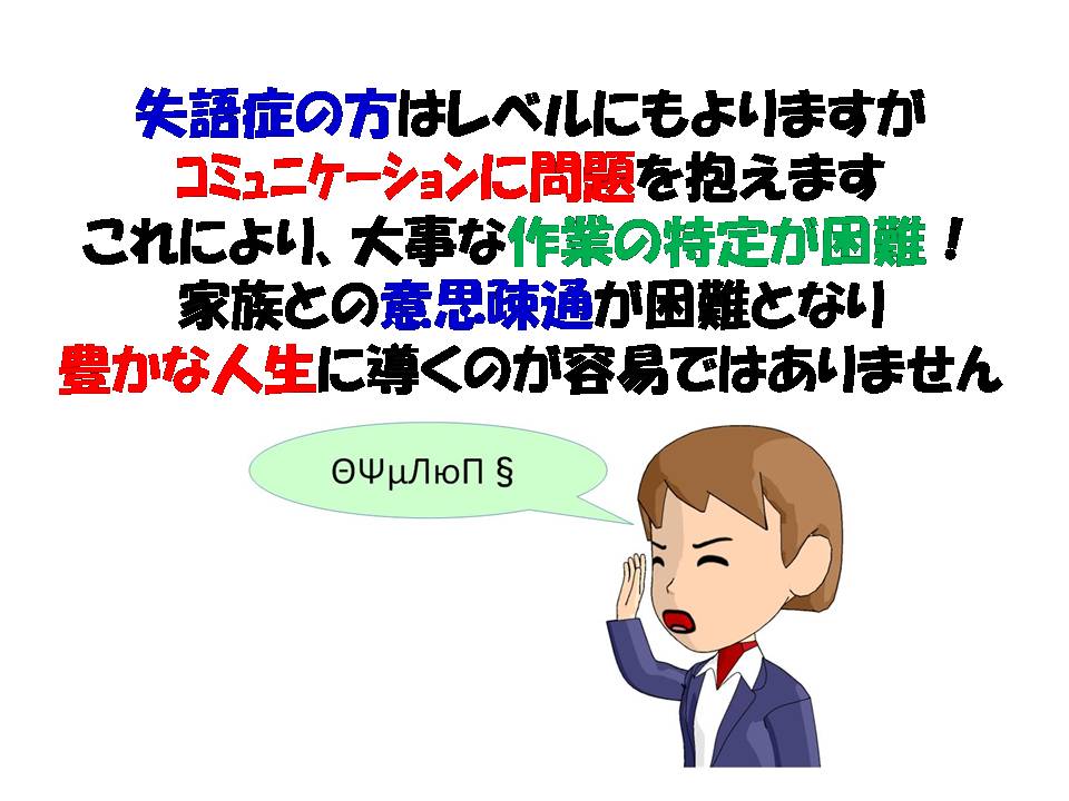失語症についての様々な疑問、困ったことに対しての考えを共有する場です。下記のスライドをご覧になって、ぜひコメントをお願いします。